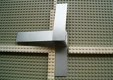 Davon werden 2 Stück längs in der Mitte anein - ander sowie mittig im 90° Winkel übereinander gelegt |