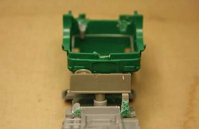 Alles überstehende unter dem Fahrerhaus entfernen und die verbleibende Fläche glattfeilen. |